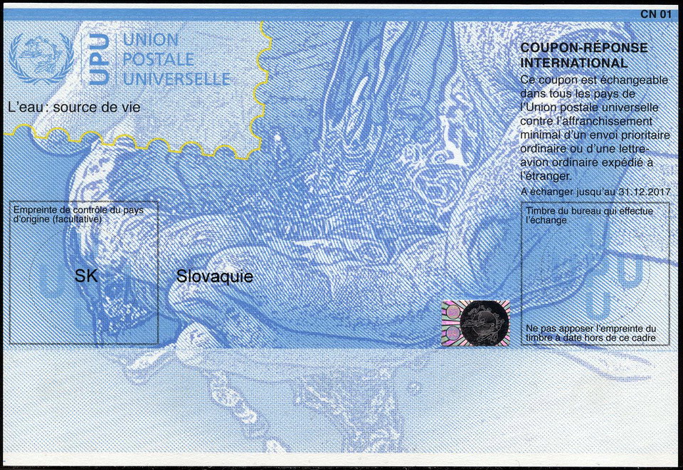 V karlínské Slovfile jsme zakoupili mezinárodní odpovědku (CRI) s českým námětem ve slovenské verzi. Tyto CRI budou ještě po 4 roky používány všemi členskými státy Světové poštovní unie. Cena slovenské CRI je 50 CZK. Jak je vidět, chybí vlaječka státu. Jsou možné obě varianty?