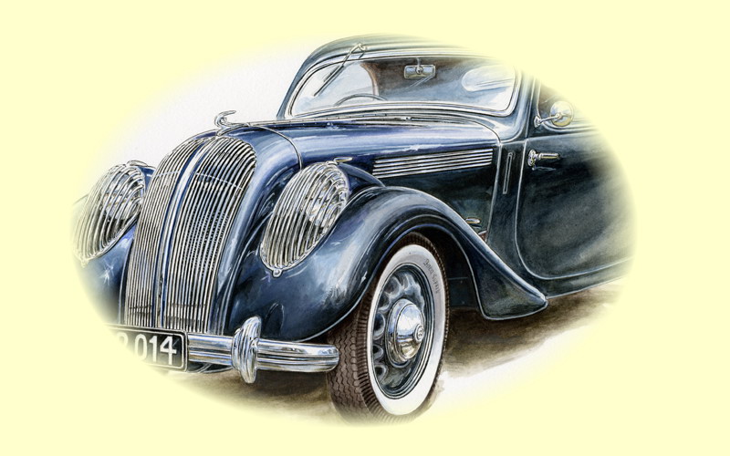 The illustration to the left evokes one of his novels, "Skřivánci na niti" ("Larks on a String"), written in 1959.